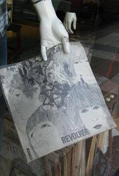 Los discos de vinilo invadieron la mayoría de las vidrieras. Algunos están simplemente colgados y mezclados entre las prendas. Otros, los «grandes old hits» aparecen más prolijos, con sus cubiertas y hasta acompañados de algún reproductor de la época o revista que hacía referencia al éxito de la temporada.