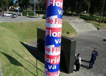 Piccone se refirió a una serie de carteles con la inscripción «Florida va de Frente» que fueron pegados en las columnas de los accesos a la ciudad de Florida y en el Prado Piedra Alta, donde se realizaron los actos por la independencia al día siguiente.