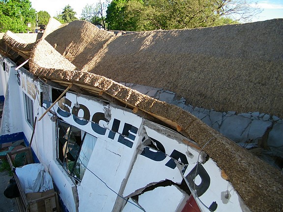 Arguiñarena no fue el único soprendido a las 10.30 del sábado cuando el principal centro social del lugar se vino abajo. El amplio salón de 300 metros cuadrados estaba en plena reforma y sólo hace 15 días le habían colocado el techo nuevo: un quinchado de paja y madera que soportó las abundantes precipitaciones de los últimos días.