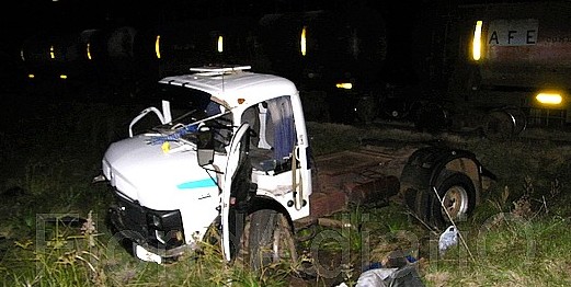 «La entrada es muy fina -en el kilómetro 120 de ruta 5 – le erro y el remolque se me queda trancado en la rueda derecha entre las dos vías. El tractor del camión me queda arriba de la vía y los novillos se me movían», contó el camionero.