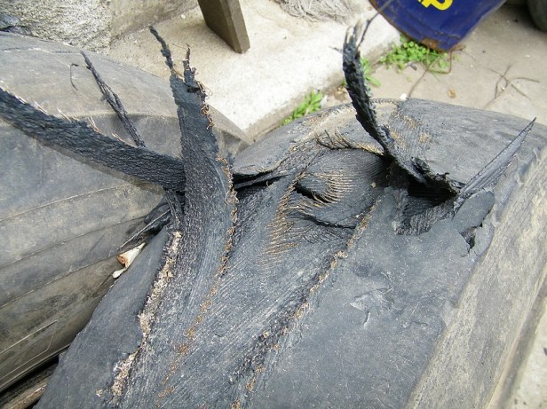 Los funcionarios mostraron a la prensa el estado de las cubiertas con las que estarían circulando los vehículos.