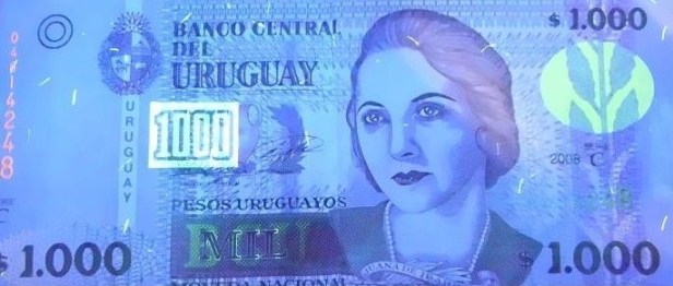 Además, la imagen latente en borde superior derecho, no muestra la sigla BCU, ni el rostro de Artigas y tampoco el valor 1.000.