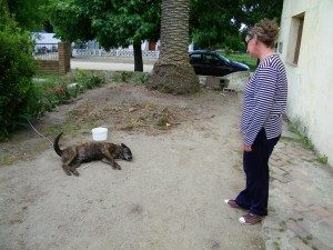 Su mascota, una perra cimarrona, sólo alcanza a mover la cola. «Sigue decaída. Está mejor, pero esto no es nada para como estaba y lo peor para mí, fue que mi sobrino tenía los mismos sintómas», agregó en su relato.