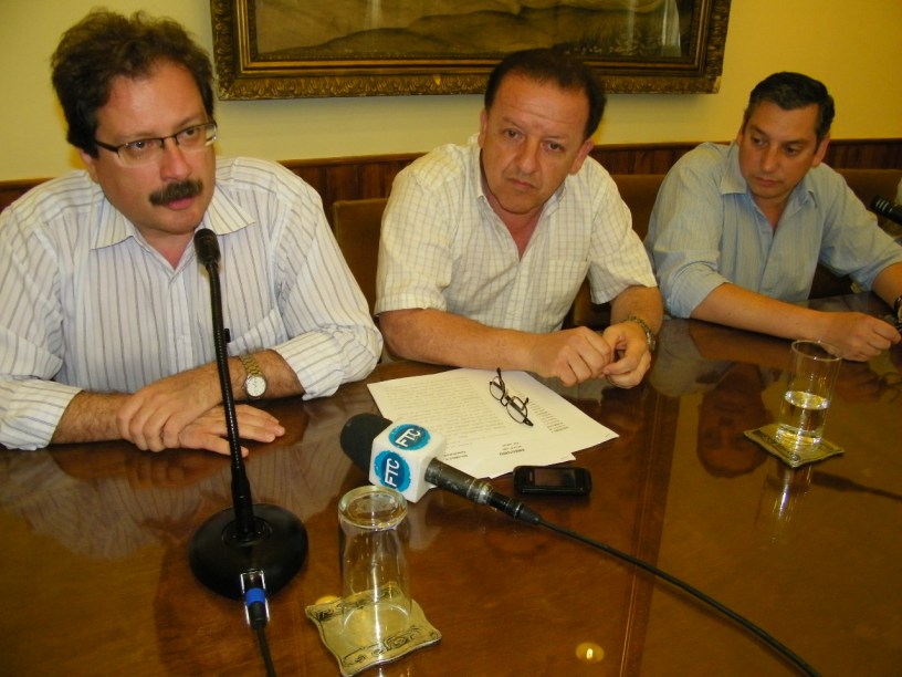 El director de Ancap, Juan Amaro Cedres, el intendente Carlos Enciso y el director de Cultura, Álvaro Riva, oficializaron la resolución del donativo que la Administración Nacional de Combustibles, Alcohol y Portland (Ancap) otorgará a la comuna con destino de inversiones en mejoras y equipamientos del teatro 25 de Agosto.