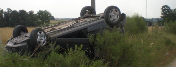 Un joven de 26 años volcó en el Camino de la Holandesas, a poco más de 500 metros de la ruta 5. Enrique Laitano Guichón, volvía desde un establecimiento rural en la zona, y debido al mal estado del camino, “agarró un pozo” -dijo un testigo- que lo llevó a perder el dominio del rodado, volcando y dandóse una vuelta sobre si, destrozando el techo y parabrisas del vehículo.