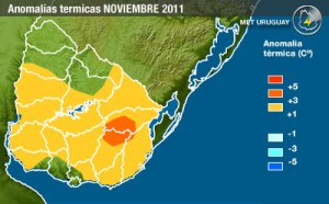 En cuanto al calor, el portal también señala que hubo anomalias térmicas. «Este mes las temperaturas promedios entre maximas y minimas fueron entre +1º y +3º sobre gran parte del Uruguay, y algunos focos entre +3º y +5º respecto al promedio climatologico mensual».