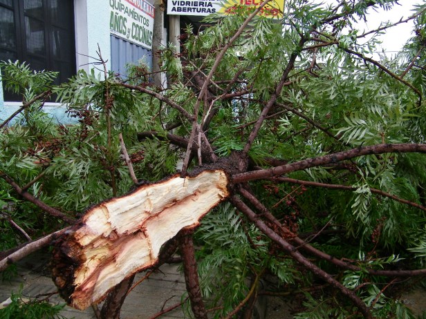 Frente al 1017 de Manuel Calleros, próximo al cruce con la avenida Atanasio Sierra, un gajo de gran porte cayó a la calle sin causar mayores daños. El gajo de más de 6 metros, era parte de un alto árbol que se partió en la mitad.