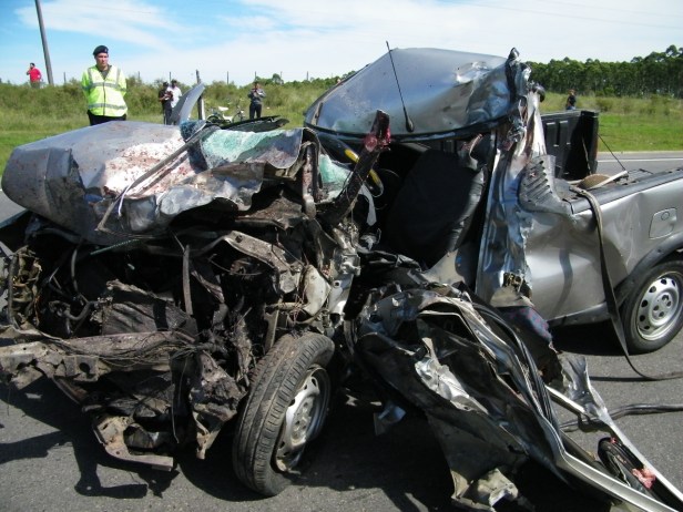 El impacto fue tal que destrozó el cráneo y el cuerpo del joven que debió ser rescatado de una masa de hierros retorcidos de la parte frontal de la camioneta Fiat Strada, matriculada en San José con el número MAC 7943.