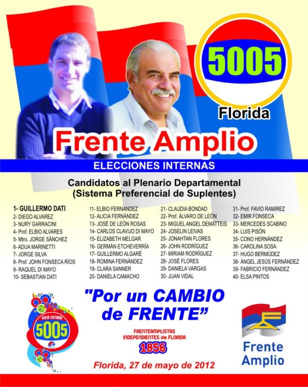 Al parecer, la Fraternidad Frenteamplista Floridense (3F) también lo entiende así, ya que la 103 también tendrá en su cabecera al ex jefe comunal junto al ex director Administración, Eduardo Riviezzi.