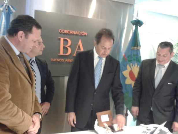 Enciso, hizo entrega de una artesanía floridense a modo de presente, al Gobernador Scioli.