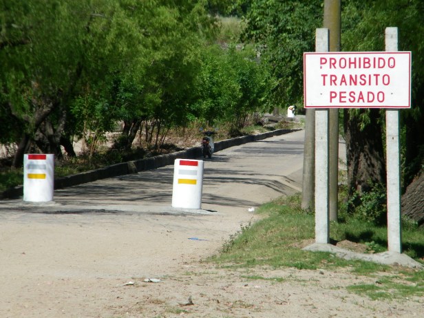 Cuatro pilotes, dos de cada lado, impiden el paso y solo lo habilitan para vehículos livianos.