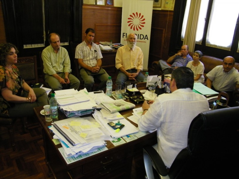 El presidente del Frente Amplio Daniel Ayala, los vice presidentes Isaac Segredo y Julio Matos, los ediles Guillermo Dati y Amanda Dellaventura, y el diputado Alvaro Vega se reunieron este mediodía con el intendente Carlos Enciso, en camino de un acuerdo para votar la donación del terreno a la empresa Aiti que se instalará en Florida para la fabricación de luminarias por inducción magnético.