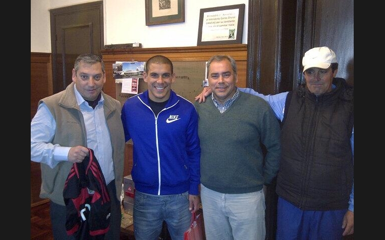 «El Pájaro» Carlos Enciso -el intendente de Florida- fue quien lo recibió. Pase a que el lateral celeste está en pleno entrenamiento -este  miércoles enfrentan a Francia, luego Venezuela y después Confederaciones- tal como han hecho otros deportistas vino a la capital de la Piedra Alta para renovar la libreta de conducir en forma «express».