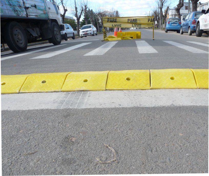 • En los emplazamientos en los que sea imprescindible asegurar la detención obligatoria del vehículo y se haya comprobado que existe una alta siniestralidad por no respetar la señalización de parada obligatoria, se podrán colocar reductores de siete (7) centímetros de altura.