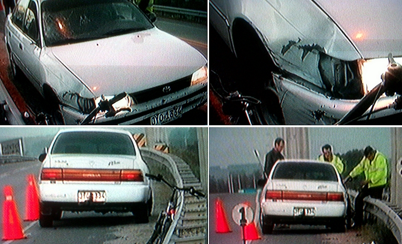El auto, que iba en el mismo sentido que la ciclista, era un coche Toyota, matrícula JYO 1334. Según el relato, el conductor iba con su familia. La mujer lesionada, “había llegado de Montevideo y decidió salir a hacer ejercicio”, cuando fue impactada y terminó nuevamente en la capital del país con múltiples fracturas.