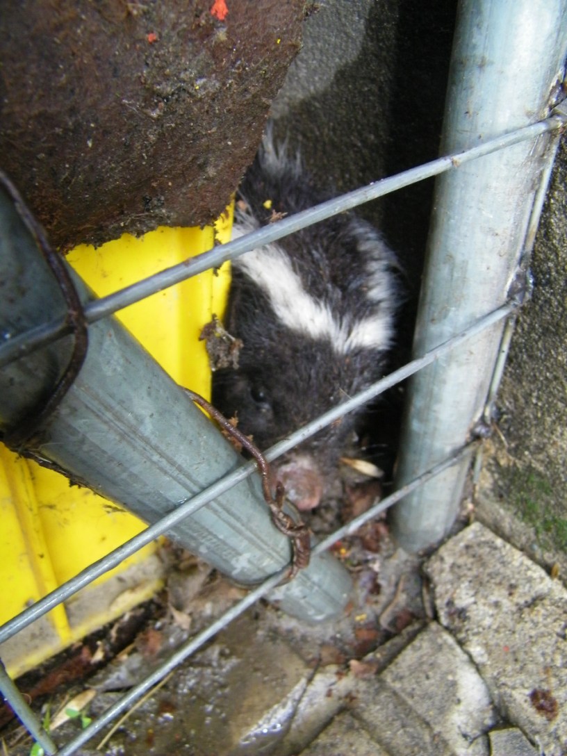 «Al igual que con los mapaches y otros animales callejeros, los zorrillos pueden sobrevivir sólo de la basura y, por ello, recurren en busca de frutas y otros desperdicios en tarros de basura».