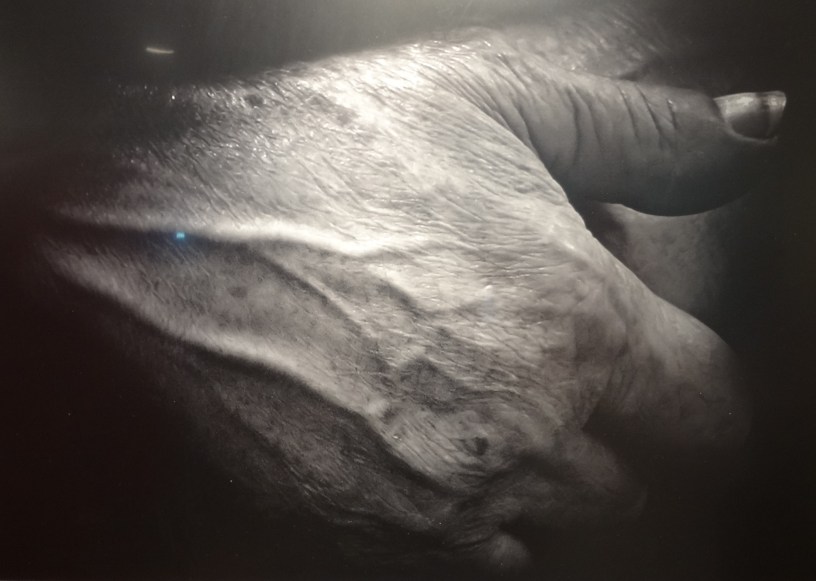 ‘La piel como palimpsesto del tiempo’ «es parte de un proceso de mi trabajo. Mi trabajo tiene un hilo conductor, que es el cuerpo humano”, explicó Monteblanco a FloridAdiariO, acerca de la exposición que se concentra particularmente en las manos, y que deja ver la piel con los contrastes que permite el blanco y negro.