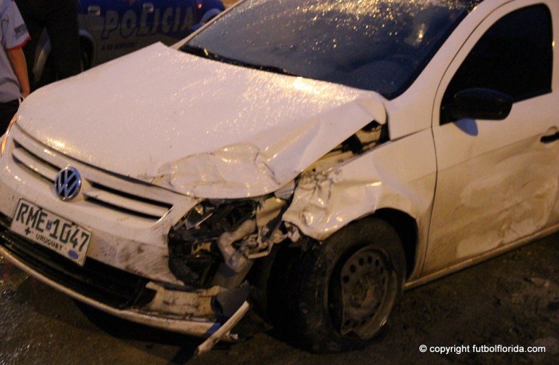 El coche blanco, matrícula RME 1047, en donde viajaba un médico con destino a Paso de los Toros no pudo evitar el impacto cuando el otro conductor lo sorprendió al intentar el cruce.