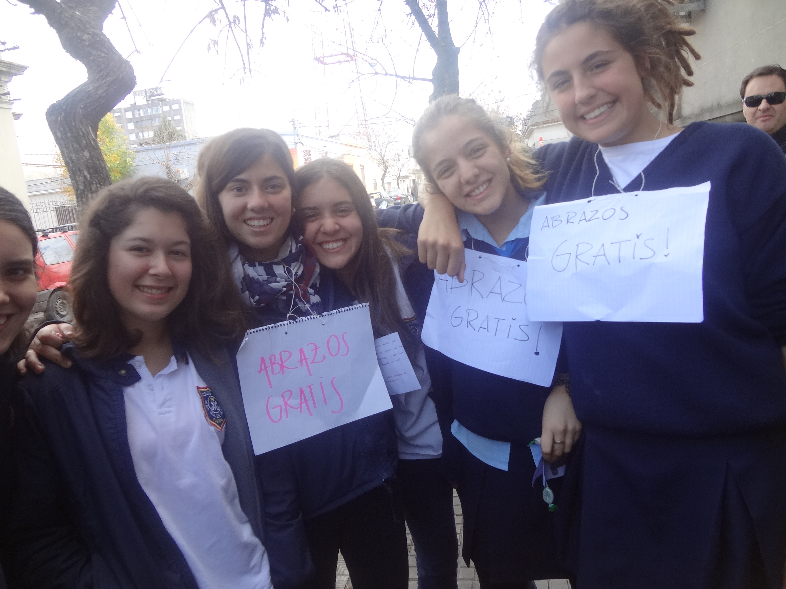 Decenas de alumnos del Colegio y Liceo Nuestra Señora del Huerto salieron del recinto de su centro educativo a regalar abrazos el miércoles por la mañana.