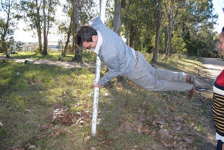 El jefe de la Unidad de Comunicaciones de la comuna floridense, Cayetano Stopingi, intentó hacer “la bandera”, pero, obviamente, no lo logró.