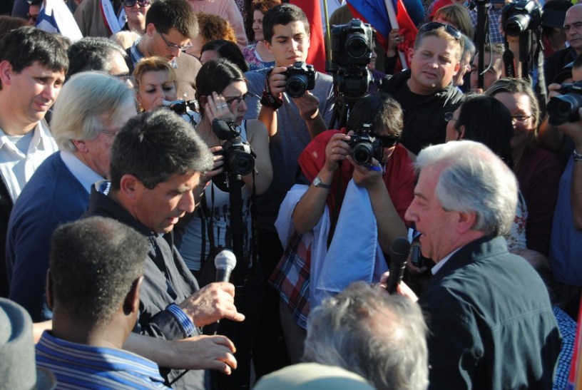 PRIMERA VUELTA Y LAS MANOS CORTADAS. Luego de reconocer los “fallos”, Vázquez pasó a las promesas y antes, respondió sobre la “primera vuelta”, otra vez con la tribuna cerca “asegurando el triunfo”.