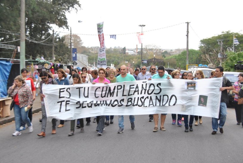Una marcha de la que participaron decenas de floridenses llegó hasta la capilla de San Cono donde dejaron una pancarta que reza: “es tu cumpleaños, te seguimos buscando”.