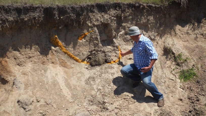 El fósil, de por lo menos 10.000 años de antigüedad no comenzó a ser excavado. El docente solo extrajo algunos huesos “que estaban en la superficie”.