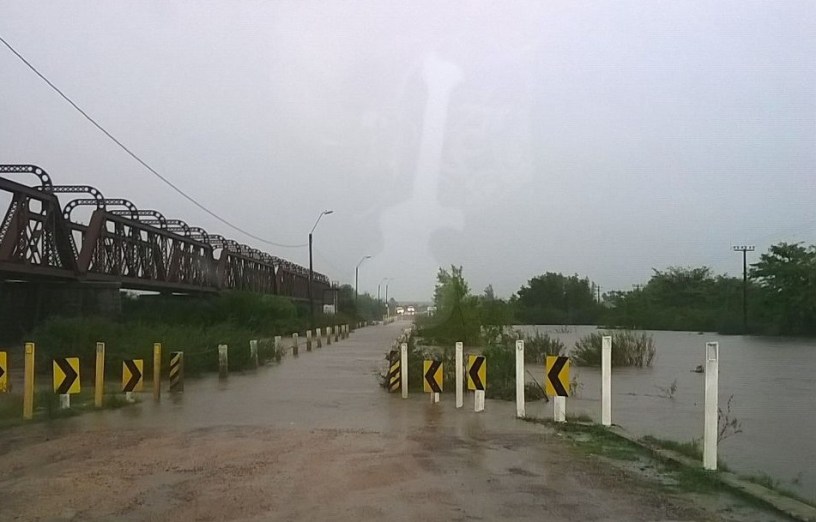 El puente sobre el arroyo Pintado otra vez crecido y cortando el paso, pero el Frenta Amplio no quiso votar el fideicomiso, que allí hará un nuevo puente que no lo tape el agua.