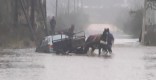 Dos autos varados en la creciente en el mismo lugar: carreros rescataron a una conductora