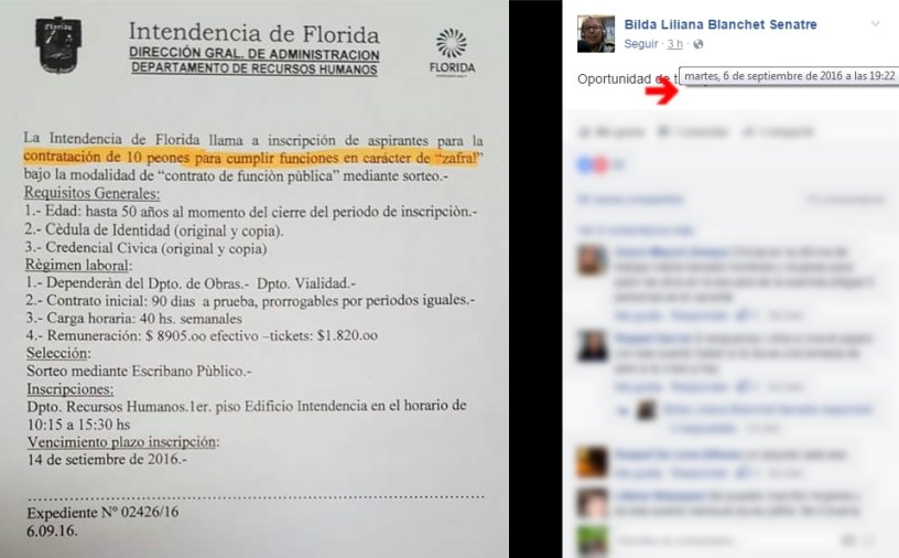 El llamado vence el 14 de setiembre. Pero, aunque la intendencia no anunció, algunas personas sabían o difundieron un documento en las redes sociales, indicando la existencia del llamado y que muchos ya estaban al tanto, e incluso, habían concurrido a anotarse.
