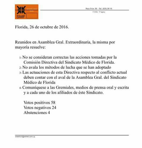 En una asamblea álgida y debatida pero sin incidentes, un fuerte grupo de médicos “y la mayoría cooperativistas”, desautorizó a la directiva del Sindicato Médico de Florida por las acciones tomadas en el conflicto entre un grupo de pediatras y la mutualista privada Comef.