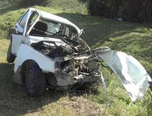 El caso ocurrió sobre las 03:30. El auto se impacto contra la zorra del camión que iba cargada de cajones. Luego despistó y volcó. Producto del choque el auto quedó destrozado.