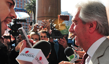 Vázquez, tras la rueda de prensa en el piso 11 de Torre Ejecutiva, informó de lo aprobado cuando se retiraba a quienes se manifestaban este lunes en reclamo por la situación generada tras la reforma jubilatoria de 1996. Les detalló de primera mano los términos de la resolución aprobada en el Consejo de Ministros, por la cual podrán elegir el sistema por el cual acogerse a retiro.