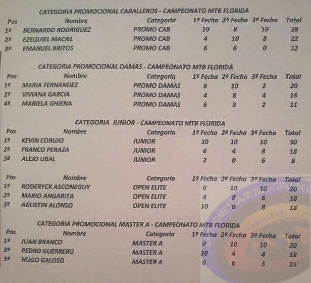 Pero además, hubo muchos ganadores en promocionales, dos categorías de damas, cuatro de masters y también juniors. Al final de las imágenes, todos los resultados de la última etapa en producción de FD y Cronómetro MTB con los podios del campeonato.