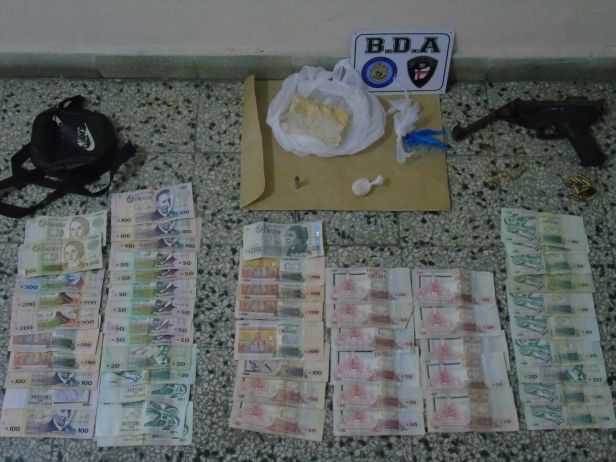 Se trató en concreto de pasta base de cocaína. Además de un arma, proyectiles y dinero en efectivo.