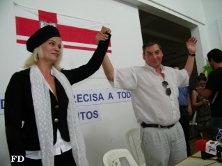 La cadena de las remembranzas se alarga y se alarga. Ojalá fuese como la cadena del excusado, que se puede «tirar» para que se vaya el excremento. Recuerdo la portada de La República, con la foto de cuerpo entero de Dárdano,vestida de cow girl, con sombrero tejano y algunos botones insinuantemente desprendidos. Era la época de su revelación como nueva figura femenina del FA. ¿Recuerdan la carita de felicidad de la hermosa, saliendo del Centro Democrático, donde estaba el cuartel general del Intendente Electo? Con su designación para «asuntos sociales» bajo su bracito, bajo su boinita estilo Che Guevara. Pero devenida herrerista. También cayó en desgracia la Guevarita de Sarandí. Cuánta agua turbia bajo el puente, por favor…