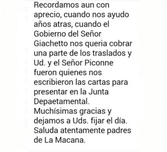 Las madres recordaron que fue el intendente quien decidió colaborar. Y fue el mismo el que decidió el recorte. “¿Qué dijo? Los tiempos cambian y se molestó cuando le preguntamos porque no recortaba los cargos de confianza, ahí subió la voz”, contó Eliana, madres de dos jóvenes que cursan sexto de medicina y derecho.
