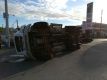 Arrancó a trabajar ayer y hoy volcó el camión en la rotonda