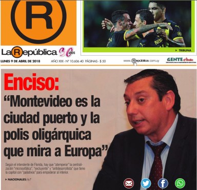 ¡Y ahora me encuentro, flotando por sobre los escaparates de diarios y revistas que aún quedan en La Florida, con los titulares que lo muestran, al futuro Senador Dale, en la Gran Prensa como un adalid de los enfoques de federación, contra el centralismo macrocefálico montevideano, defensor de LOS OLIGARCAS.