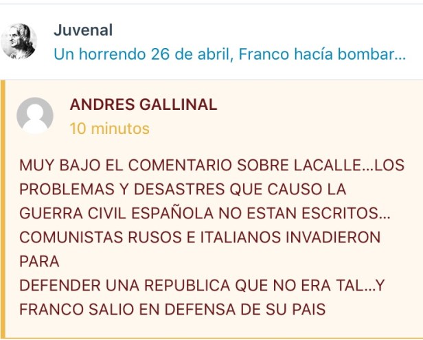 ¡Salve, oh polis altardelapatrialteña custodiada por el «heroico» batallón! ¡Sutil y mordaz, os saluta Juvenal!