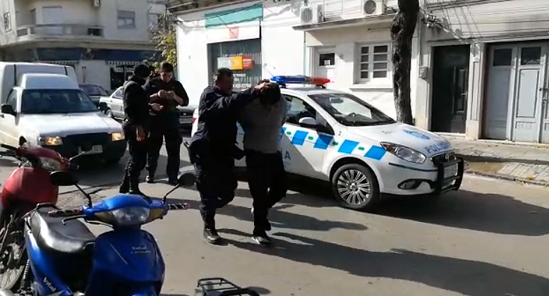 Eran tres. Y uno, salió con un televisor al hombro en pleno sábado, en un concurrido centro de Florida. Con el Smart tv a cuestas, nadie demoró en notar que se lo llevaba del comercio Albanés Hogar. Un hombre lo trajo al piso enseguida. A golpes lo redujo mientras los empleados recuperan la tevé.