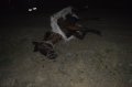 Pareja se salva por poco al impactar de frente con un caballo
