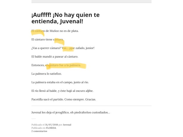 Juvenal os saluta, oh piedralteños custodiados… Seguid descifrando jeroglíficos…
