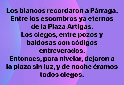 Las conexiones eléctricas del alumbrado de la pobre Plaza Artigas, saltaron todas en honor a Párraga.