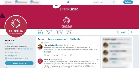 La cuenta oficial de la intendencia de Florida @floridaidf retuiteó este martes la bienvenida que el senador le dio al precandidato del denominado “Grupo de los Intendentes – Mejor País”, Enrique Antía.