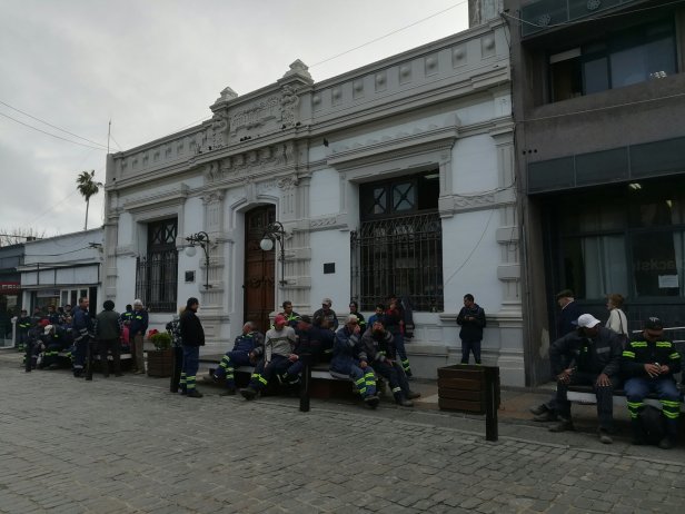 Los trabajadores iniciaron la movilización temprano, inmediatamente después de ingresar al área de trabajo. Posteriormente, comenzaron una caminata hasta las puertas de la comuna.