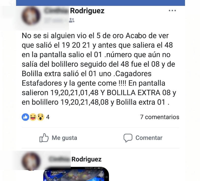 «El sorteo y cada número que va saliendo del bolillero es supervisado por la escribana de la Dirección de Loterías y Quinielas». Explican que «los números en pantalla los digita un funcionario del canal», citó el matutino en base a las redes sociales, pero el comentario fue retirado posteriormente.