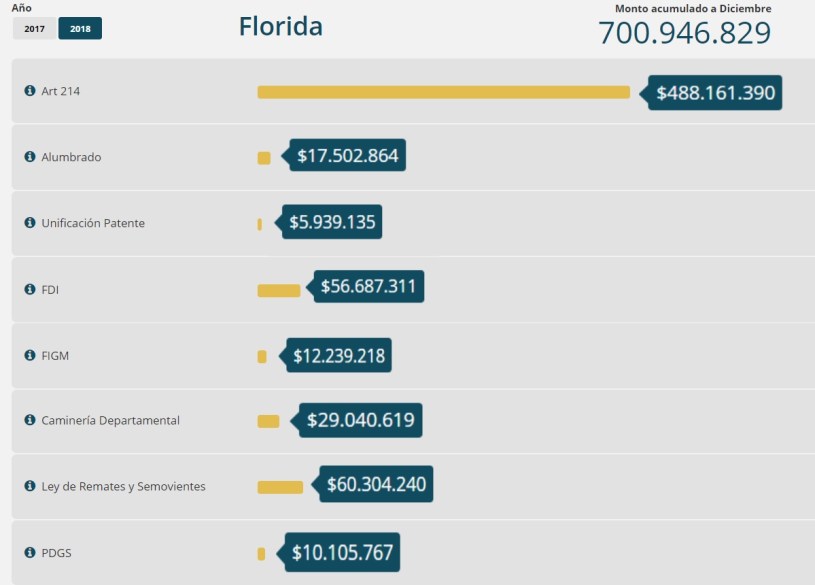 El monto recibido por la intendencia de Florida en 2018.
