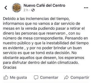 Desde el Café del Centro, por ejemplo, también se indicó que hubo que realizar la devolución correspondiente a sus clientes: