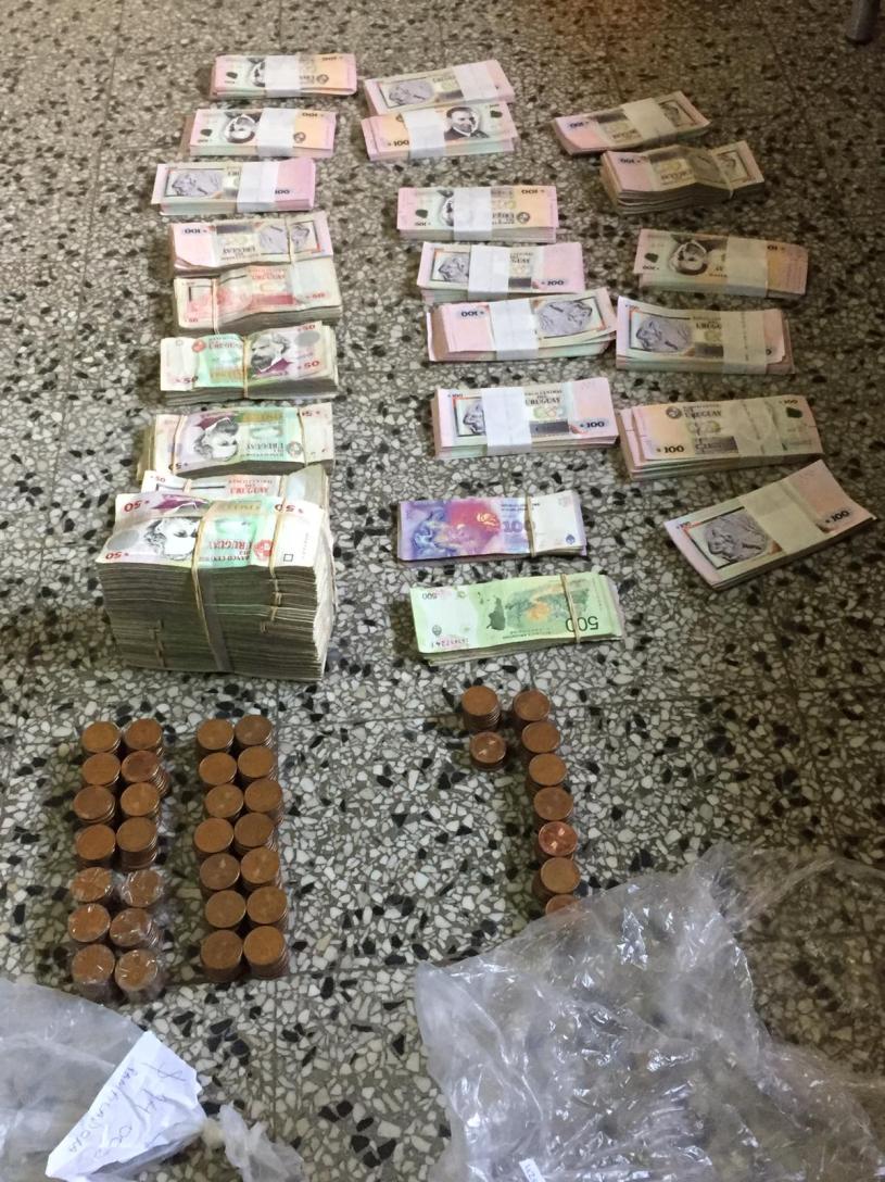 billetes de 50 y 100 pesos uruguayos, así como moneda argentina); también se incautaron herramientas, guantes y equipos de comunicación e inhibidores de señales. También se hallaron documentos de identidad a nombre de J.A.O.S.